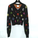 これで貴方はみんなからの注目の的!!! 稀少品の シャネル Vニット 黒のベースにマルチカラーのロゴがちりばめられとっても可愛いです超可愛い!! 誰もが振り返るほどのロゴキャラ!!【レア物 超希少】CHANEL ロゴ入りジャガード Vニット マルチカラー 美品 【中古】 【送料無料】 レア物 稀少品