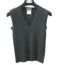 これで貴方はみんなからの注目の的!!! 稀少品の シャネル V襟サマーニット!! サイドにCHANEL ロゴプレートを手付であしらったとっても大人っぽいです今だけ値下げ!超可愛い!! サイドにシャネルロゴプレートを手付であしらった可愛く大人っぽい V襟サマーニット!!【レア物 超希少】CHANEL ロゴプレート入りリブ織のVニット 美品 【中古】 【送料無料】 レア物 稀少品