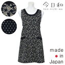 和柄 綿 ムラ糸クロス【今日和】 コンニチワ ムラ糸クロス和調プリント 背付きエプロン〈1点までメール便OK〉 和調 日本製