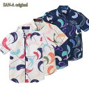 メンズ サンエー オリジナル 【 送料無料 】かりゆし ウェア 衿はみ出しライン柄 ノーアイロン P-SAT1806 半袖 シャツ ボタンダウン ビジネス 沖縄版 アロハシャツ