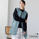 ナイロン100%の素材に、ダウン80%を使用したお尻が隠れる着丈の超軽量ダウンロングベスト 軽い 暖かい 温かい 秋 冬 女性ダウンベスト ロング レディース filomo ライトダウン ロングベスト ナイロンベスト ダウン80% ノーカラー 超軽量 インナーベスト ブランド フィローモ 秋 冬 プレゼント ギフト 5F (08000346r)