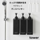 マグネットで浴室壁面に浮かせて収納できるディスペンサー。壁面に設置したままポンプが押せて便利です。1プッシュ3.6ccとたっぷりの量。浮かせているので底もぬめらず衛生的。たっぷり洗剤が出るマグネットディスペンサー タワー 山崎実業 tower ホワイト ブラック シャンプー コンディショナー ボディソープ 3点セット 1532 1533 1534 1535 1536 1537 TOWER 【正規品】