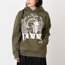 【新品 正規品】GANNI ガニー パーカー フーディGANNI ガニー トップス フーディー パーカー ISOLI T3652 レディース カーキ グリーン オーバーサイズ ロゴ フード付き 長袖 裏起毛 秋冬