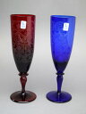 | 鮮やかな発色のボヘミアクリスタル。展示品のため3割引ラスカ ボヘミアガラスアラベスクペアフルート(レッド/ブルー)