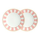 | パステルカラーのストライプが明るくファッショナブルなデザイン。ノリタケ カーニバル21cmプレートペアセット(ピンク)