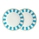 | パステルカラーのストライプが明るくファッショナブルなデザイン。ノリタケ カーニバル21cmプレートペアセット(ライトブルー)