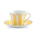 | パステルカラーのストライプが明るくファッショナブルなデザイン。ノリタケ カーニバルティー・コーヒー碗皿(イエロー)
