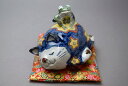 | 愛嬌のある表情と独特の色使いが魅力的な有田焼の置物です。有田焼 童工房福猫置物 福カエル座布団付き