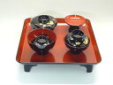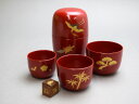 | 古典的で華やかな屠蘇器揃い。お正月用にぴったりです。会津塗洗朱 切立銅張 四つ揃花小紋(屠蘇器揃)