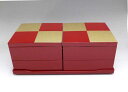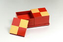| 縁起の良い市松紋様のスタイリッシュな重箱。山中漆器北市漆器店市松GOLD4.0二段オードブル重(朱)