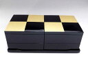 | 縁起の良い市松紋様のスタイリッシュな重箱。山中漆器北市漆器店市松GOLD5.0二段オードブル重(黒)