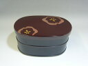 | 十字の仕切り付き。お花見などの行楽弁当箱にも。山中漆器7.0寸 小判お好み重 京梅(うるみ)