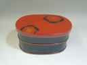 | 十字の仕切り付き。お花見などの行楽弁当箱にも。山中漆器7.0寸 小判お好み重 京梅(朱)