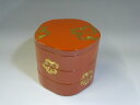 | 梅型の小ぶりなお重箱です。山中漆器梅型三段重 金梅(洗朱)