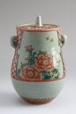 飛騨高山、渋草焼の赤絵香炉の逸品。岐阜県高山 渋草焼渋草柳造窯 錦牡丹香炉