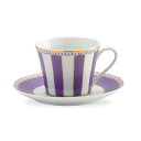 | パステルカラーのストライプが明るくファッショナブルなデザイン。ノリタケ カーニバルティー・コーヒー碗皿(ラベンダー)