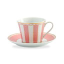 | パステルカラーのストライプが明るくファッショナブルなデザイン。ノリタケ カーニバルティー・コーヒー碗皿(ピンク)