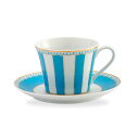 | パステルカラーのストライプが明るくファッショナブルなデザイン。ノリタケ カーニバルティー・コーヒー碗皿(ライトブルー)