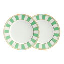 | パステルカラーのストライプが明るくファッショナブルなデザイン。ノリタケ カーニバル21cmプレートペアセット(アップルグリーン)