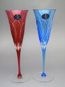 | 鮮やかな発色のボヘミアクリスタル。展示品のため3割引ラスカ ボヘミアガラスアラベスクペアフルート(レッド/ブルー)