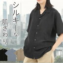 レトロな雰囲気が魅力のオープンカラーシャツ。形状安定でイージーケアなところも魅力オープンカラーシャツ レディース 半袖 レディースシャツ オーバーサイズ 開襟シャツ Yシャツ 白シャツ 形状安定 無地 シンプル おしゃれ オシャレ オープンカラー ユニフォーム 作業着 仕事着 ドロップショルダー イージケア 春 夏 秋 白黒ベージュ ワークシャツ 1785