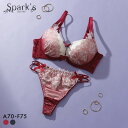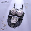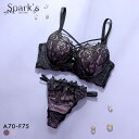 胸もとを飾るコードがセクシーなブラ&ノーマルショーツセットスパークス ゴシックレース ブラジャー ノーマルショーツ セット 脇高 谷間 ABCDEF バックレース SPARKS 大きいサイズ レディース 全2色 A70-M-F75-L