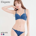 やわらかワイヤーで楽ちんすっきり★美胸プチプラブラセット A-Fエレガント らくちんソフトワイヤー プチフラワー ブラセット ABCDEF 大きいサイズ グラマー ブラジャー ショーツ セット Elegante レディース 全2色 A70-M-F75-L