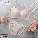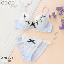 リボンやふんわりシャーリングで甘い雰囲気に仕上げたブラセットココランジェ シアーシャーリングリボン ブラジャー ショーツ セット COCO Linge 大きいサイズ レディース 全3色 A70-M-F75-L