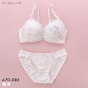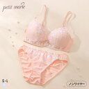ノンワイヤーでゆるふわリラックス☆可愛いプチプラブラセットプチマリー プチフラワー刺繍 ノンワイヤー ブラセット SML ブラジャー ショーツ セット petit marie WHITE レディース 全2色 S/S-L/M