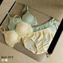 ラクな着けごこちを叶えるノンワイヤーブラセット♪アモスタイル AMST1525 らくふわ ノンワイヤー ブラセット ブラジャー ショーツ セット BCD STYLE LGR YE レディース 全2色 B65-M-D75-L