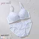 やさしいカラー&もこもこ小花刺繍がかわいいプチプラブラセットプチマリー プチフラワー刺繍 ブラセット ABCD ブラジャー ショーツ セット まる胸 petit marie WHITE レディース 全2色 A65-M-D75-L