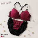 バックのクロスストラップがセクシーなブラセット ABCDEFプチマリー バッククロスレース ブラセット ABCDEF ブラジャー ショーツ セット バックシャン 盛りブラ petit marie BLACK レディース 全2色 A65-M-F75-L