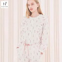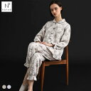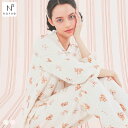 ふんわり柔らかな接結素材を使用した上品な花柄セットアップナルエー パジャマ 裏綿接結(綿入り)トワルドラパンシャツパジャマ セットアップ 上下セット ルームウェア 長袖 レディース 全2色