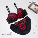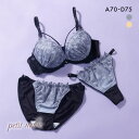 花柄刺繍が大人セクシーなL字ワイヤーブラセット プチプラプチマリー リッチフルール ブラセット ABCDEF ブラジャー ショーツ セット petit marie BLACK レディース 全3色 A65-M-F75-L