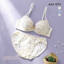 きらきらラメ糸フラワー刺繍がフェミニンなプチプラブラセット☆プチマリー ラメフラワー ブラセット モールド ABCD ブラジャー ショーツ セット petit marie WHITE レディース 全3色 A65-M-D75-L