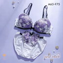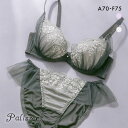 ラメ花柄刺繍とサイドチュールが上品でフェミニンなブラセット☆パリーゼ フルールチュール ブラセット ABCDEF サイドチュール ブラジャー ショーツ セット Palissee レディース 全3色 A70-M-F75-L