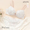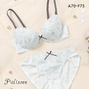 水彩タッチの花柄プリントとラメレースが清楚かわいいブラセットパリーゼ ペールフローラル ブラセット ABCDEF ブラジャー ショーツ セット プリント Palissee レディース 全3色 A70-M-F75-L