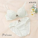 毎日使いたくなる!心ときめくフェミニンカラーブラセット☆パリーゼ フルールアップリケ ブラセット ABCDEF ブラジャー ショーツ セット Palissee レディース 全3色 A70-M-F75-L