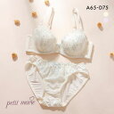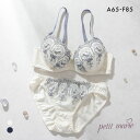 ラメ糸が輝く線画風フラワー刺繍が大人可愛いプチプラブラセットプチマリー シルバーラメフラワー ブラジャー ショーツ セット モールド ABCD petit marie WHITE レディース 全3色 A65-M-D75-L
