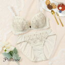 フラワーラメ刺繍×サイドチュールがフェミニンなブラセットパリーゼ リュミエール ブラジャー ショーツ セット ナイスフィット ABCDEF サイドチュール Palissee レディース 全3色 A70-M-F75-L