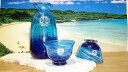 沖縄で手作りの琉球ガラス!!・クリスマス沖縄の琉球ガラス★コバルトとっくり&ぐいのみ(2個)の3点セット★Made in Okinawa 沖縄の海を思い出させるコバルトブルーの徳利&ぐいのみセット。彼氏やお父さんへのプレゼントに喜ばれています。