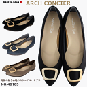 ファーストコンタクト、アーチコンタクトシリーズからの待望の新作ARCH CONCIER アーチコンシェル日本製 パンプス レディース 痛くない 柔らかい ローヒール 歩きやすい フラットシューズ ゴールドバックル モチーフ フラットシューズ アーモンドトゥ 婦人靴 ARCH CONCIER アーチコンシェル 49105
