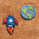 アイロン接着OK、かわいいアップリケワッペン。入園入学の準備に!女の子/男の子ワッペン アイロン アップリケ ロケット 地球 女の子 男の子 入園 入学 子供 かわいい 手芸 ハンドメイド Totalitat トタリタット アップリケ ワッペン ロケットと地球 【メール便対象品】