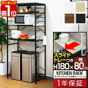ごみ箱上のデッドスペースを収納場所にできる、幅80cmサイズのワイド収納ラック。使う時だけ引き出すスライドトレー、高さを変えられる可動棚で台所グッズやキッチン家電をまとめて収納。【楽天1位】レンジ台 ゴミ箱収納 80幅 ワイド 高さ180cm キッチン収納ラック レンジラック ゴミ箱上 収納 ラック ゴミ箱上ラック レンジボード スライド棚 可動棚 サイドハンガー レンジ 棚 キッチンラック ラック 食器棚 キッチン収納 ■[送料無料]