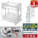 シンクに設置できる折りたたみ式水切りラック。大容量で沢山の食器を入れても安心の耐荷重、ステンレス製フレームがしっかりと支えます。水切りラック シンクサイド 横置き 縦置き【楽天1位】折りたたみ 水切りラック スリム 2段 ステンレス 大容量 幅36cm×26.5cm コンパクト 省スペース 水切りかご 水切りバスケット キッチンラック シンクラック 完成品 キッチン収納 流し台 シンク横 水切り 食器 収納 おしゃれ 1年保証 ■[送料無料]