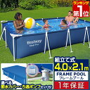 【選べるカバー付き・ろ過ポンプ付きセットも】空気入れ・ポンプが不要な組立て式の大型フレームプール。子供はもちろん大人も遊べるビッグサイズ。ペットの水浴び・シャワーにも【楽天1位】プール ビニールプール 大型 4m×2.1m 長方形 BESTWAY フレームプール レジャープール 家庭用プール キッズ 子供用プール 水遊び ペット 水浴び 約400cm×210cm×81cm ポンプ不要/組立て式 選べるカバー/循環ろ過ポンプセットも 1年保証 ■[送料無料]