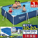 【選べるカバー付き・ろ過ポンプセット付きも】空気入れ・ポンプが不要な組立て式の大型フレームプール。子供はもちろん大人も遊べるビッグサイズ。ペットの水浴び・シャワーにも【楽天1位】プール ビニールプール 大型 3m×2m 長方形 BESTWAY フレームプール レジャープール 家庭用プール キッズ 子供用プール 水遊び ペット 水浴び 約300cm×200cm×66cm ポンプ不要/組立て式 選べるカバー/循環ろ過ポンプセットも 1年保証 ■[送料無料]