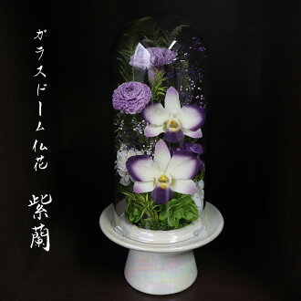 プリザーブドフラワーの仏花 一対のガラスドーム。喪中見舞いやお供えに枯れないお花の花ギフト。プリザーブドフラワー お供え