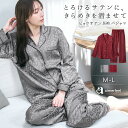 上品な光沢とひそやかにきらめくヒョウ柄が魅力のサテンパジャマ上下セット。派手すぎない総柄デザインで、大人のリラックスタイムを上品に彩るルームウェアです。福D【40~60%OFFクーポン】ルームウェア ヒョウサテン パジャマ 長袖 上下セット(レディース 女性 秋 冬 ナイトウェア パジャマ 長袖 ロングパンツ 前開き 上下セット 部屋着 寝間着 ルームウエア ヒョウ柄 光沢 サテン レオパード)