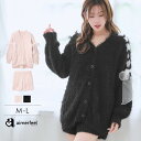 肩からの編み上げチュールリボンがあざといシャギーニットカーディガンとショートパンツの可愛い上下セットのルームウェア。お尻が隠れる丈感でさりげなく体型カバーの効果も!福D【3点20%OFFクーポン】ルームウェア リボン シャギーニットカーディガン 長袖 上下セット(レディース パジャマ 秋 冬 おしゃれ セットアップ カーディガン ショートパンツ 長袖 大人可愛い 寝間着 編み上げ チュールリボン 寝巻 ナイトウェア リラックスウェア)